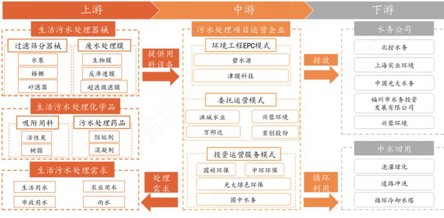 污水處理產(chǎn)業(yè)鏈和市場格局。