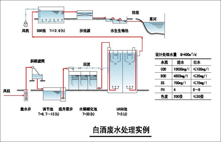 下圖是白酒廢水和印染廢水的一種處理流程原理圖。