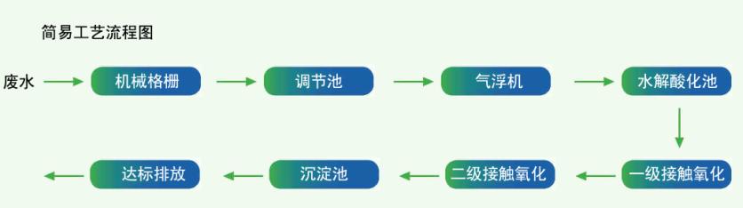 進(jìn)行酸化處理,通過厭氧菌將大分子有機(jī)物轉(zhuǎn)化成低分子有機(jī)物;經(jīng)水解酸化池流入接觸氧化池進(jìn)行生化反應(yīng)后再進(jìn)入沉淀池,出水經(jīng)過濾消毒達(dá)標(biāo)排放